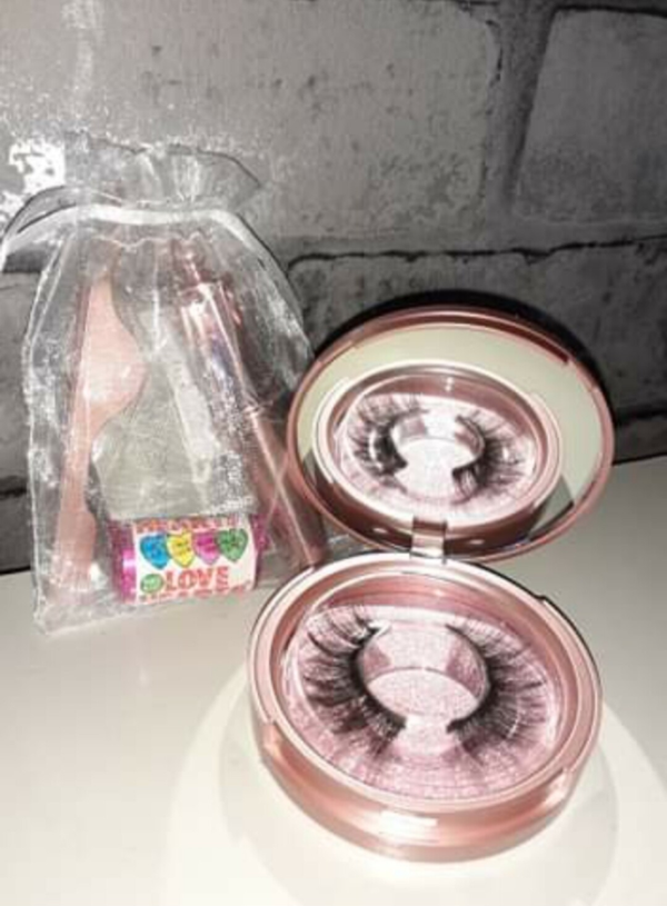 Each of our amazing lash kits come with 1 set of magnetic lashes, magnetic eyeliner, flip mirror, mini Dermalogica eye cream, mini facial cloth, mini sweeties! Placed in a decorative box.